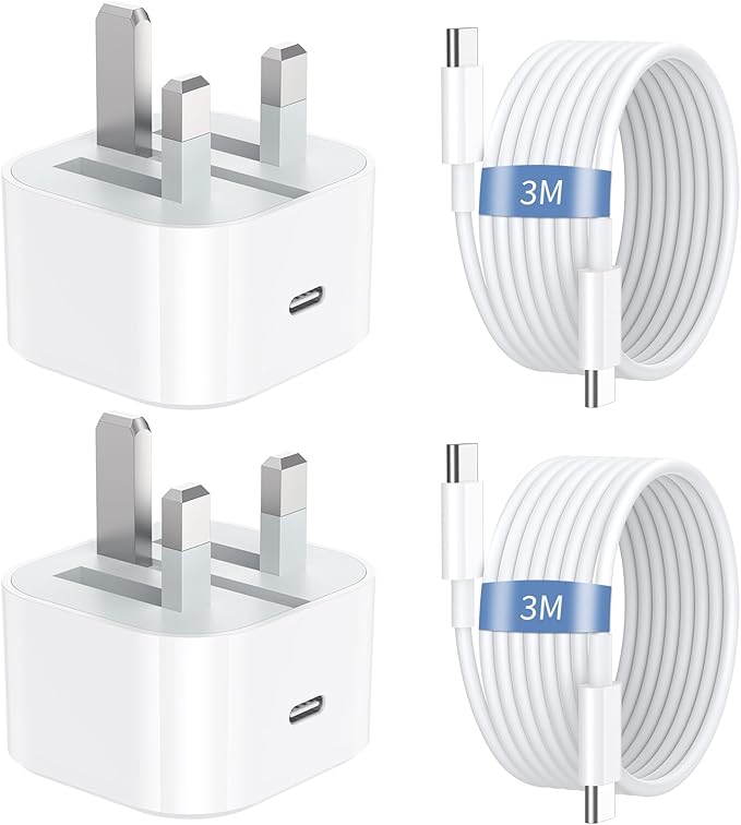 Stay powered up with this 2 Pack iPhone Charger Cable with USB Adapter, designed for fast, safe, and reliable charging. Each pack includes two extra-long 3-metre Lightning cables, giving you flexibility and convenience whether you're at home, in the office, or on the go.